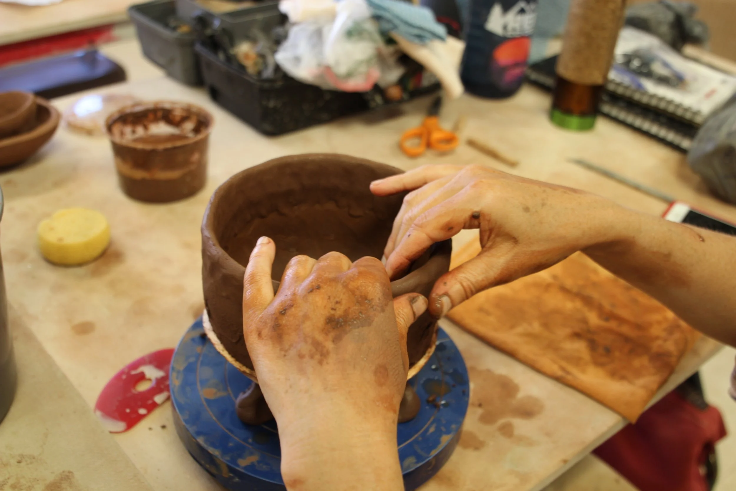 It begins on bended knee. Then, the rhythm of my working: gather, wash, coil, pinch, polish, fire. Shaping the earth with my hands and heart I am both holding and being held. Each time I cycle through each step of my process I realize (again) it is in my hands and through my making (not in my mind through my thinking) where deep and true connection dawns. Through the intimacy that grows in the silent dialogue of my studio practice I come to respect the fragile, vulnerable moments of what it is to trust and harmonize. Over time I have come to realize how such resonance is essential and increasingly valuable in these intensified, unprecedented times.