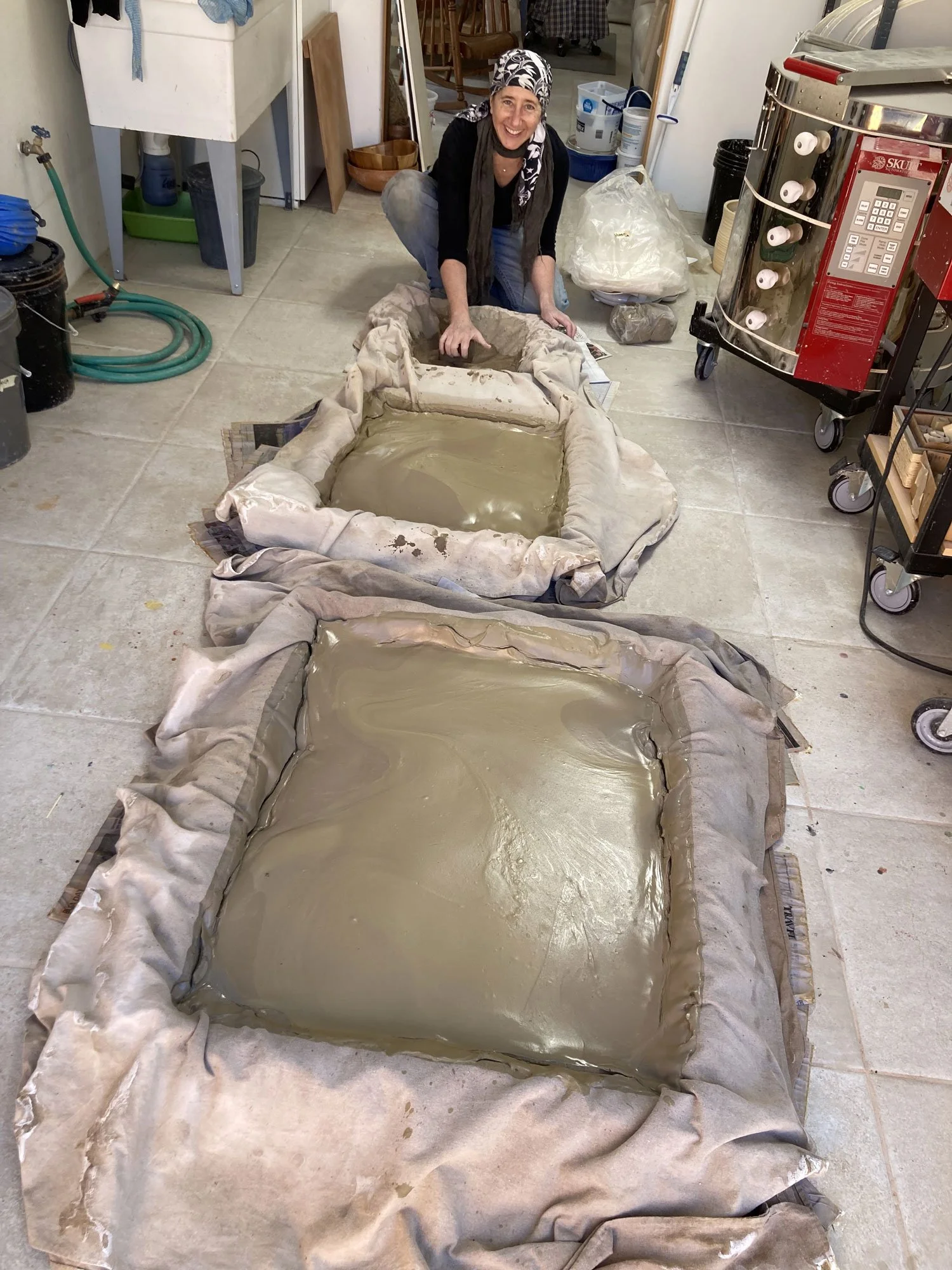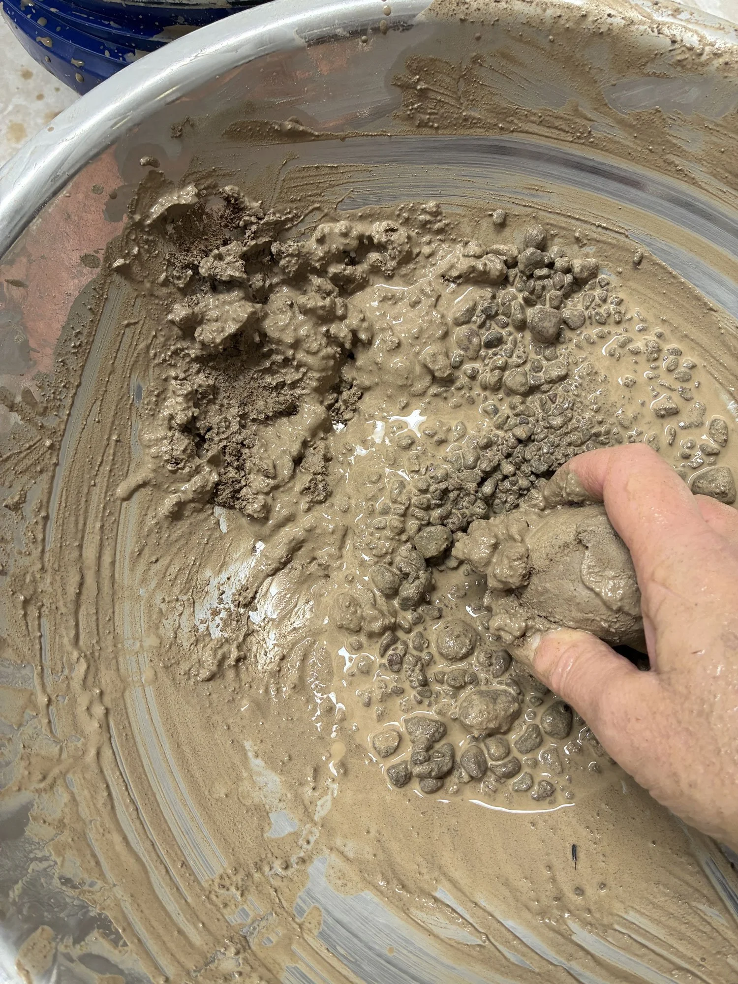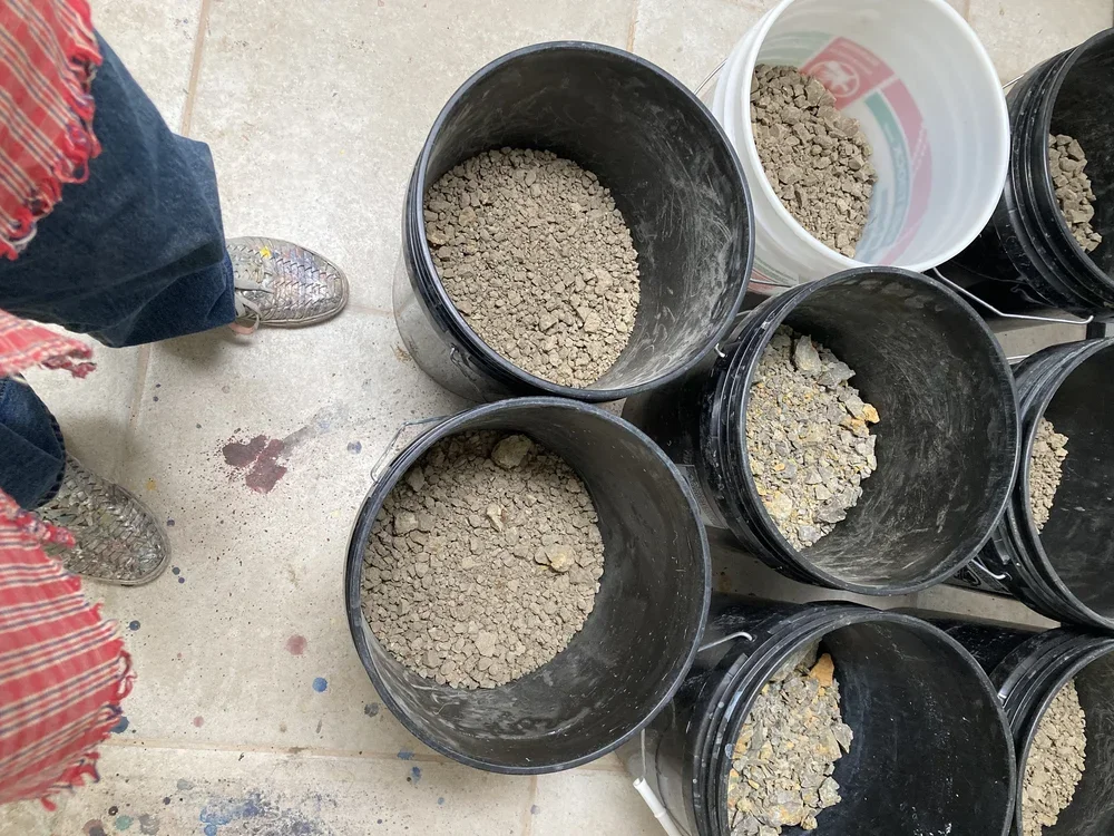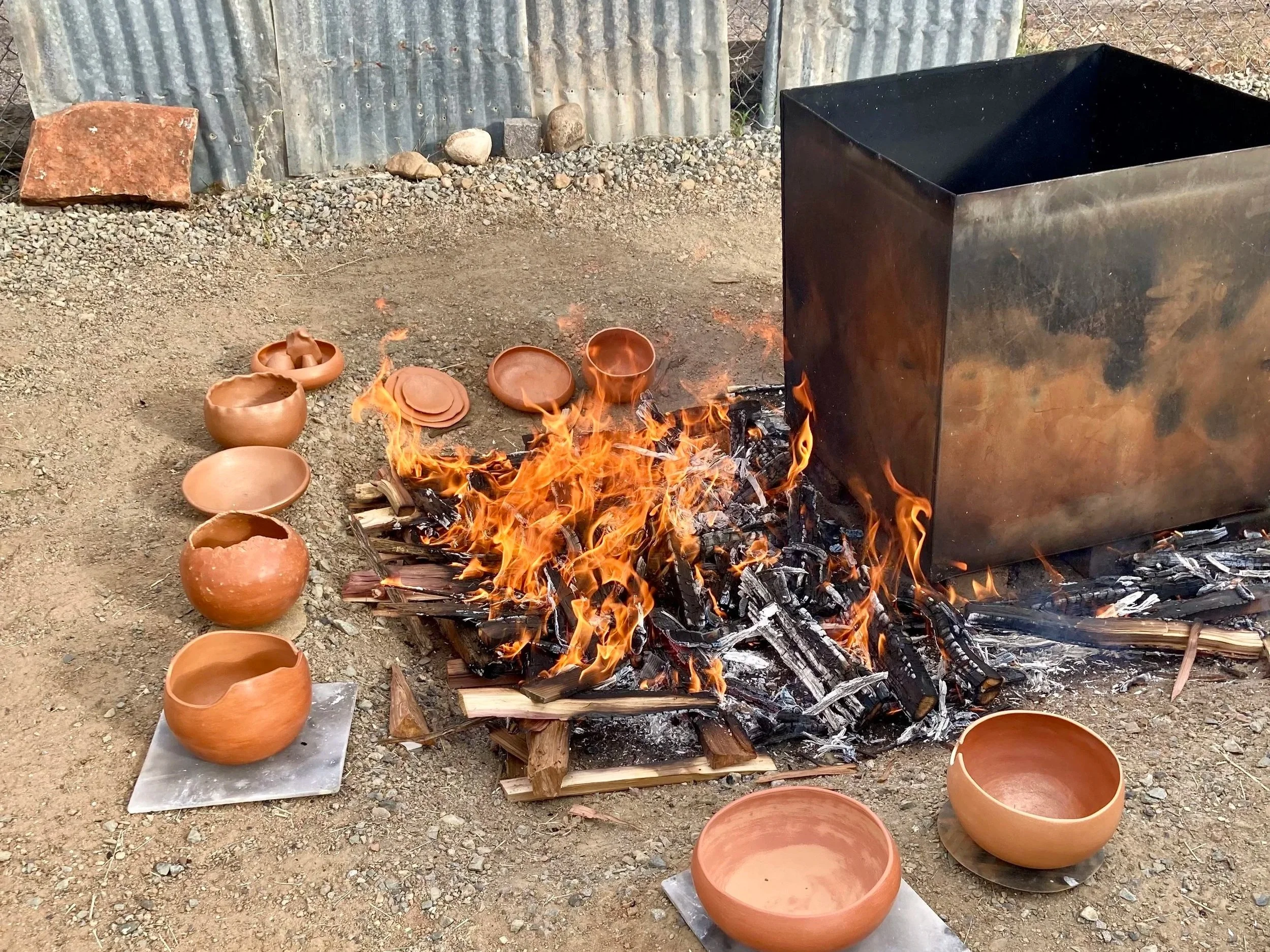 The many stepped processes of hand-gathering and hand-processing material — traveling to the site; the intentionality and prayer to Mother Earth; the physicality of digging, carrying, stirring, washing, straining, wedging; the patience required for the process to complete — all of this before the creating even begins — each is a step towards deepening in relationship and offers valuable insights to the way things operate in the world and my place in it. When the firing process is also held in a prayerful way, the act of offering the earth back to herself in the name of "new life" preserves the sacred connection through to each work's completion. This receptive circular process is a healing experience that supports, stays with and integrates into my evolving understandings and conceptualizations. Where my clay works express what I see, my paintings express what I feel — I joyously celebrate in the infinite play of the same “stuff” (earth, water, fire, air, space) in different form.